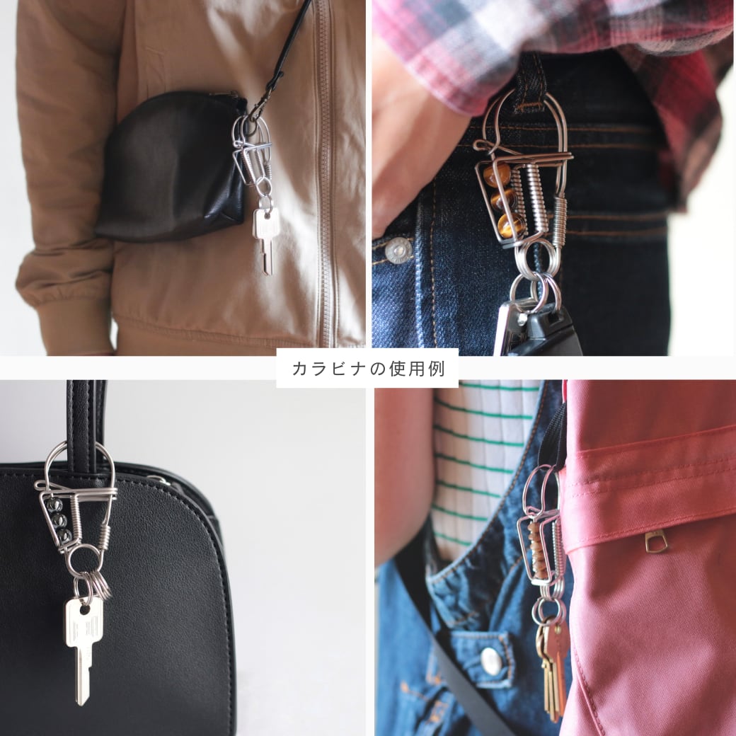 モノトーンな雰囲気のカラビナもちょっとおしゃれに持ち歩いてみたいな。